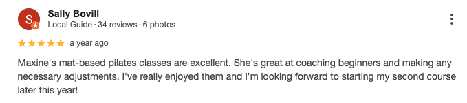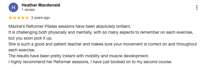 “I have been doing Mat-based pilates with Maxine for just over a year now.